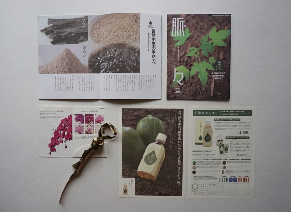 We have comprehensively handled the design of communication tools for "Manju no Shizuku," a fermented green papaya extract. Over the past two years, we have been involved in the planning, design, and direction of various materials, including the quarterly magazine "Myaku Myaku," posters, product flyers, product introduction videos, and direct mail to customers nationwide, as well as newspaper advertisements.