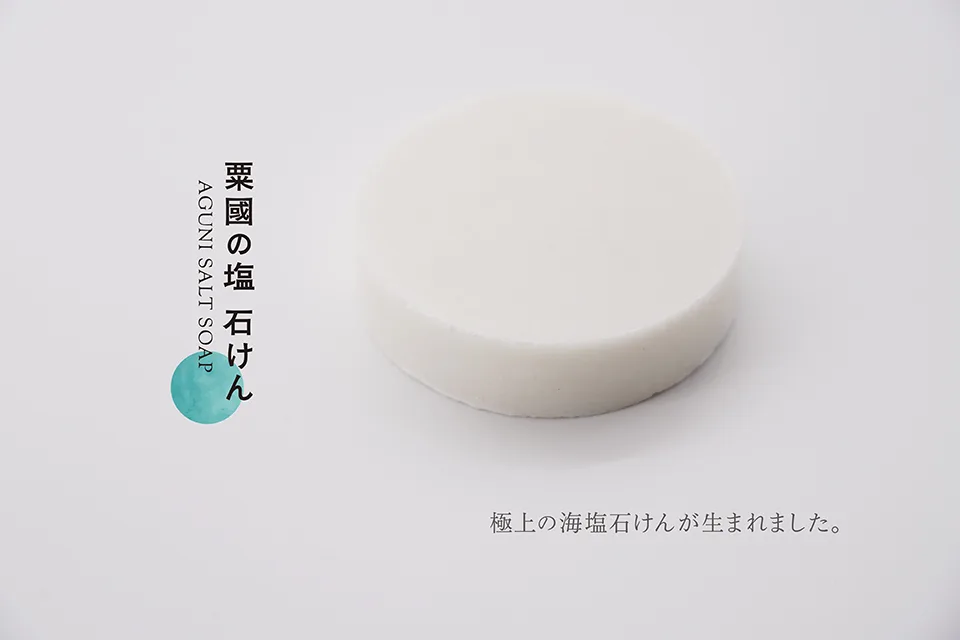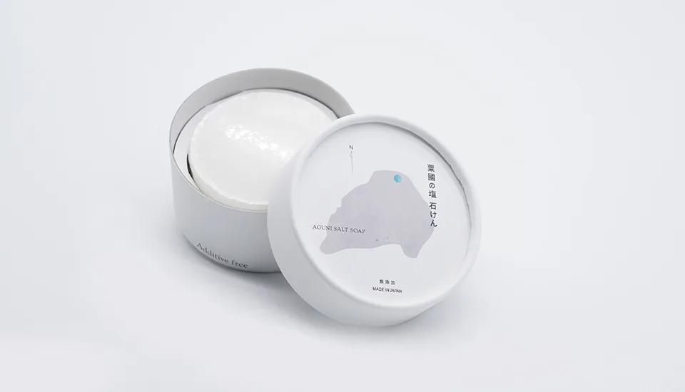 その「粟國の塩」を30%も配合した「粟國の塩石けん」のブランド開発では卓越した素材の価値を邪魔することの無いよう、“余計なことをしない”ディレクションとなりました。大人から赤ちゃん、敏感肌の方も安心してお使いいただける無添加の全身石けんです。