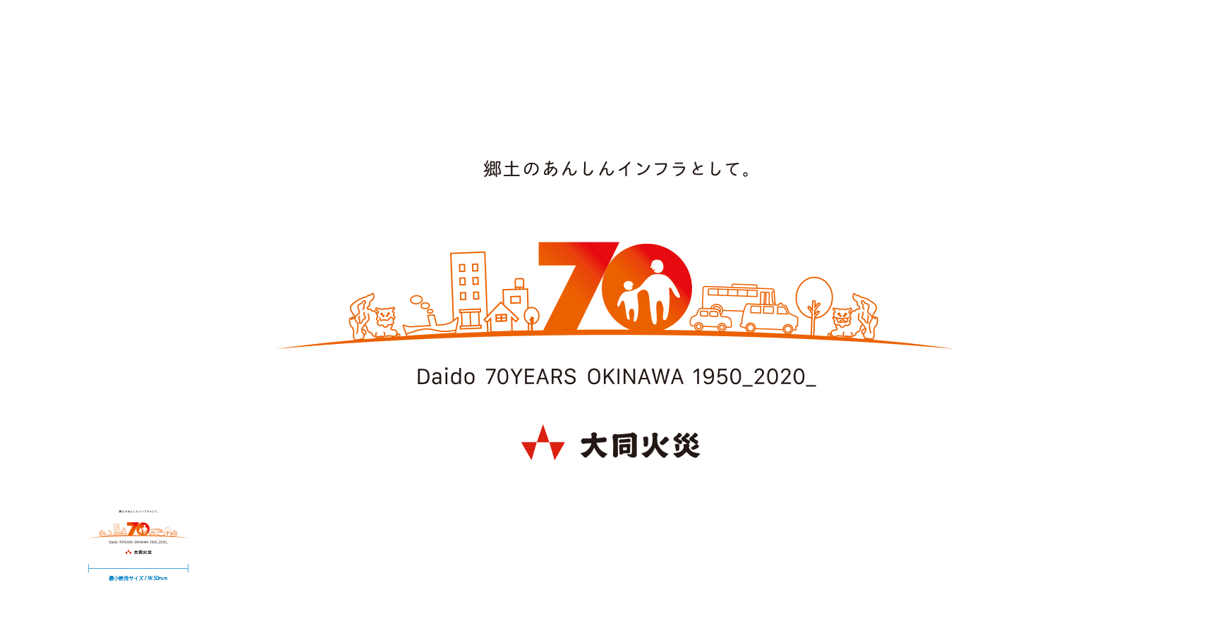 2020年9月に創業70周年を迎えた大同火災海上保険保険株式会社。WEBサイトやTVCMや新聞広告、名刺、ノベルティグッズ、各種印刷物等に汎用的に用いるためのシンボリックなマークの企画・デザインを担当しました。